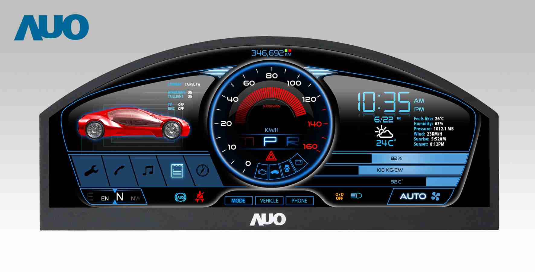糖果派对 12.3吋超高解析异型切割车用面板,,,,拥有流线外观及精细画质