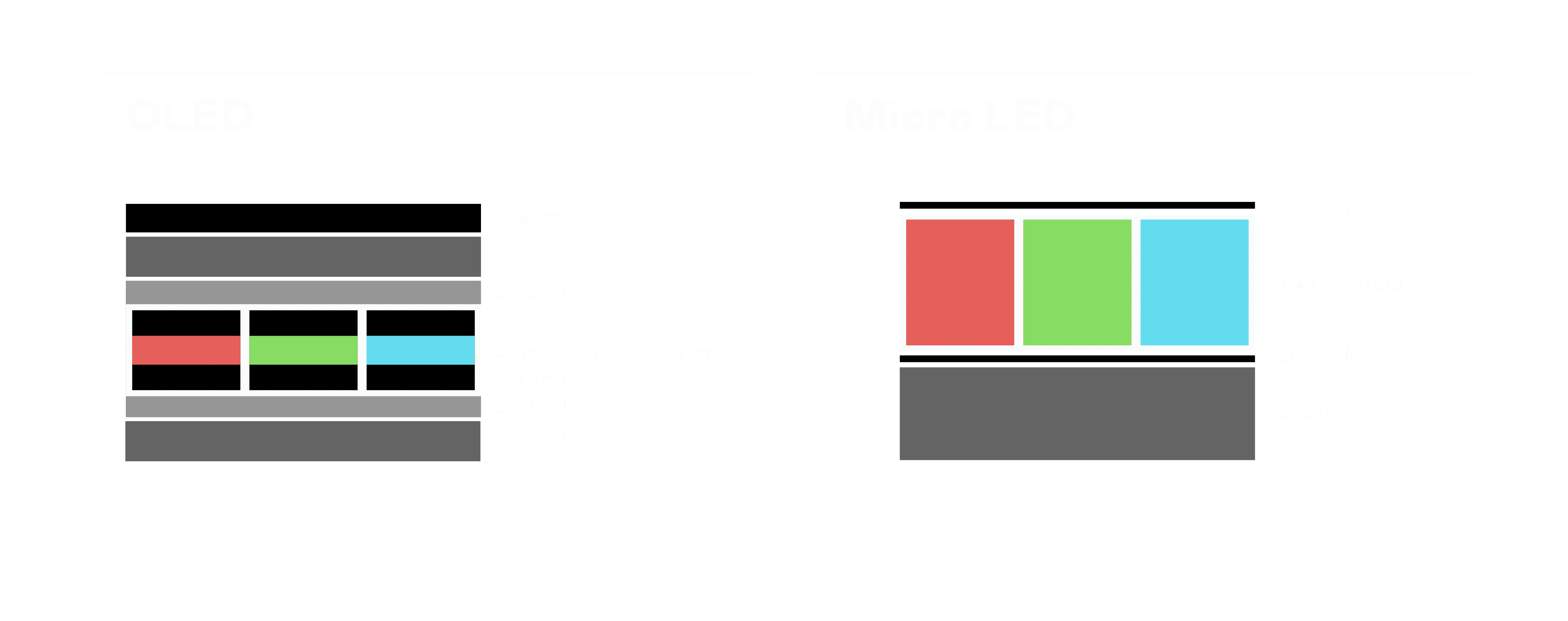 以 LED 做为显示画素,,,可让 LED 的发光效率发挥到极致,,,从而让显示器具备优异的亮度表现,,,不论是在户外或室内,,均具备出众的显示效果。。。。同时,,与使用有机材料的 OLED 相比,,,,LED 具备更稳定、、、、寿命更长的特性,,不仅不会有画面烙印问题,,而且更不容易出现故障、、、、坏点。。。